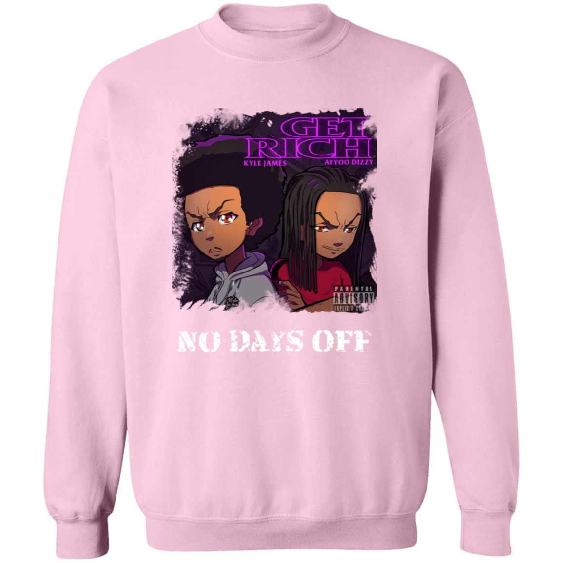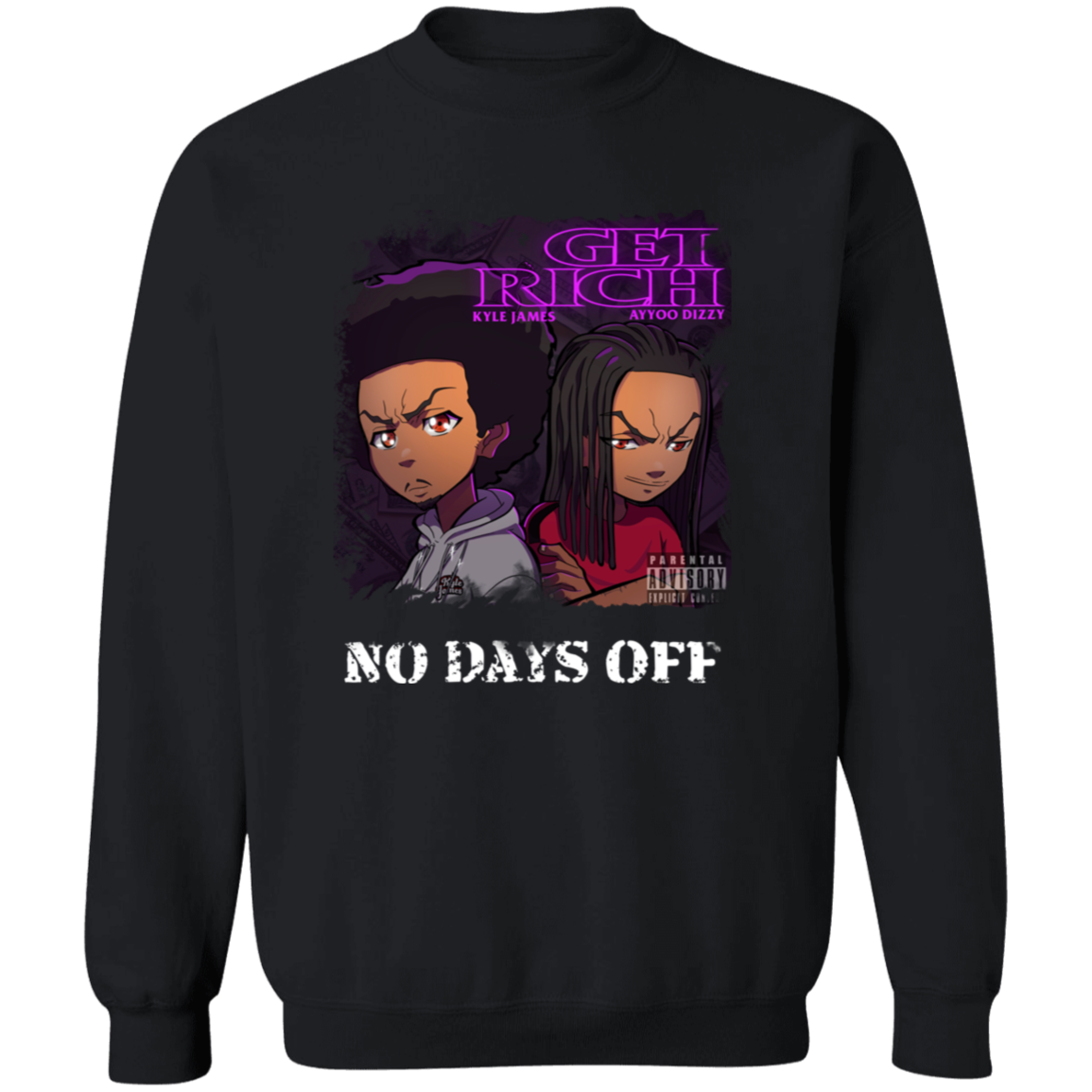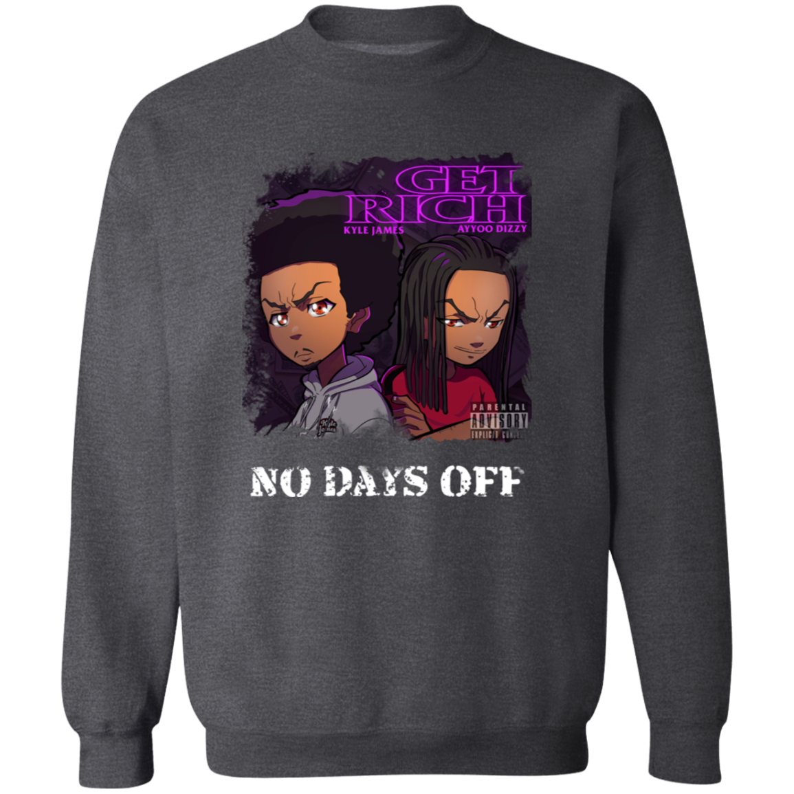 The official merch for the music videos, “Get Rich” and “No Days Off” by Kyle James and Ayyoo Dizzy!