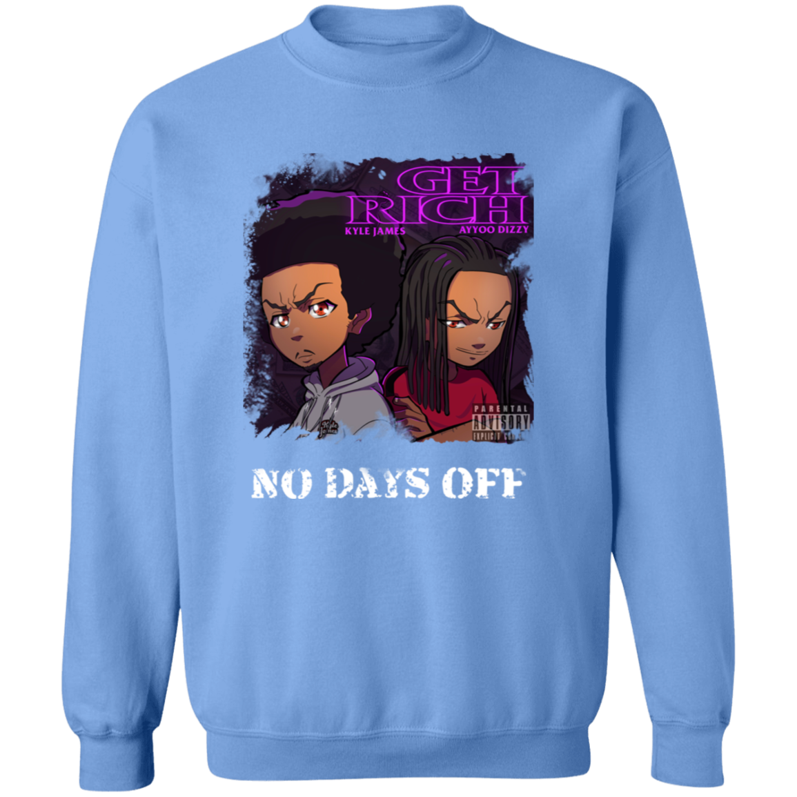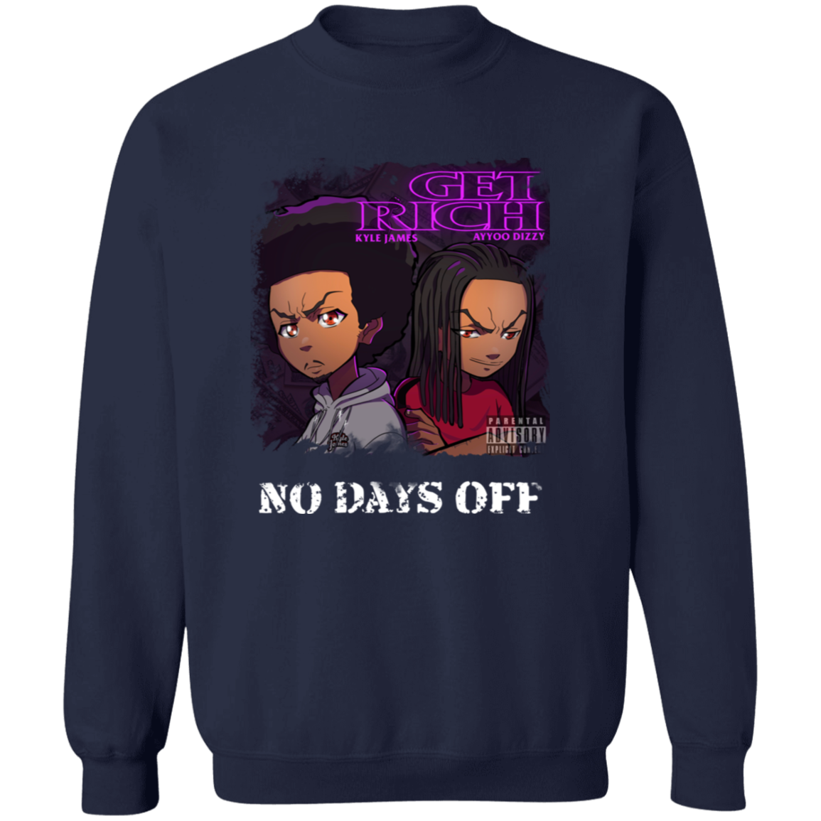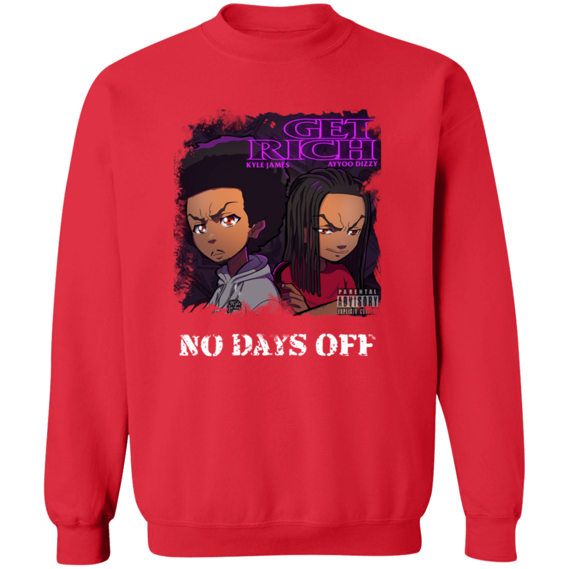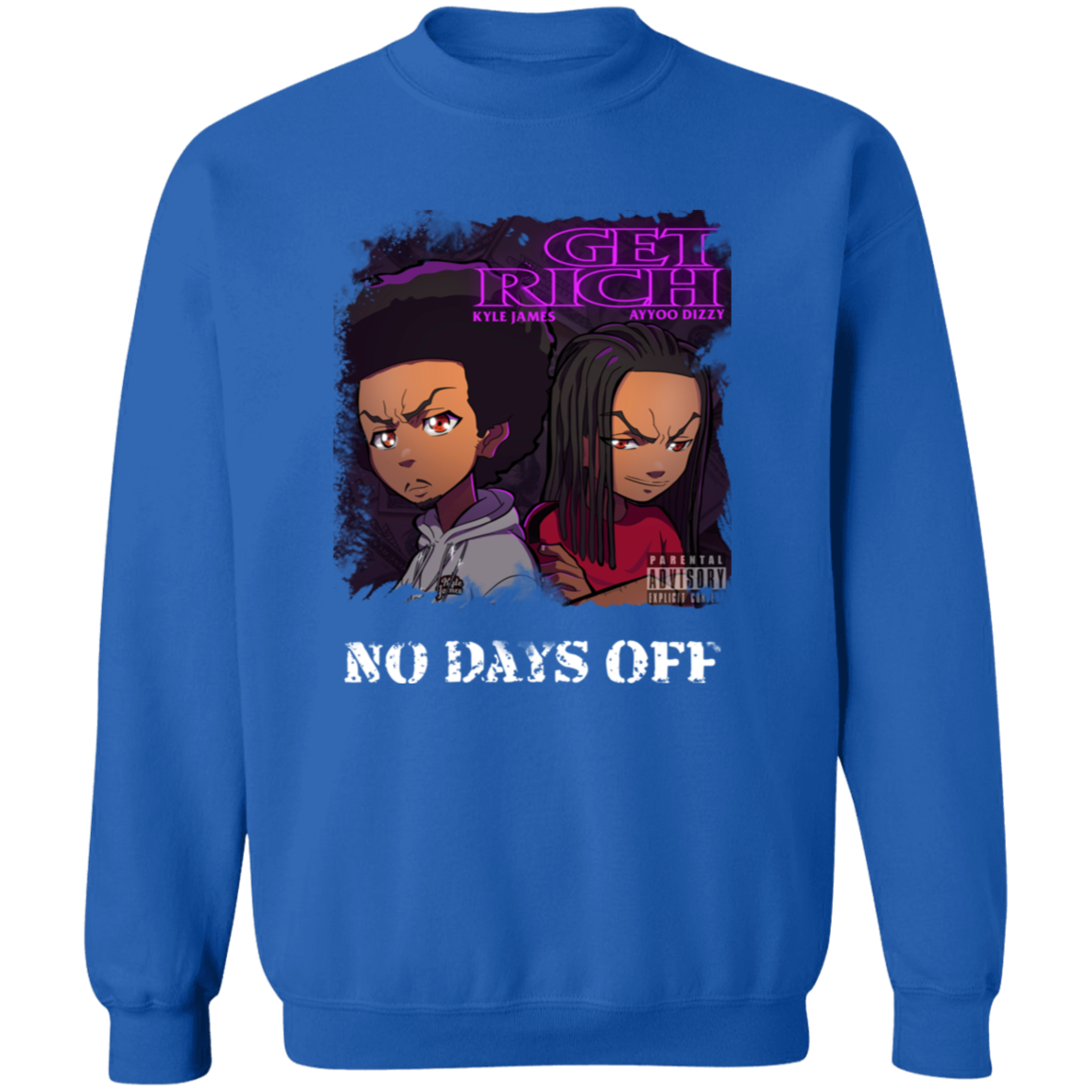 The official merch for the music videos, “Get Rich” and “No Days Off” by Kyle James and Ayyoo Dizzy!